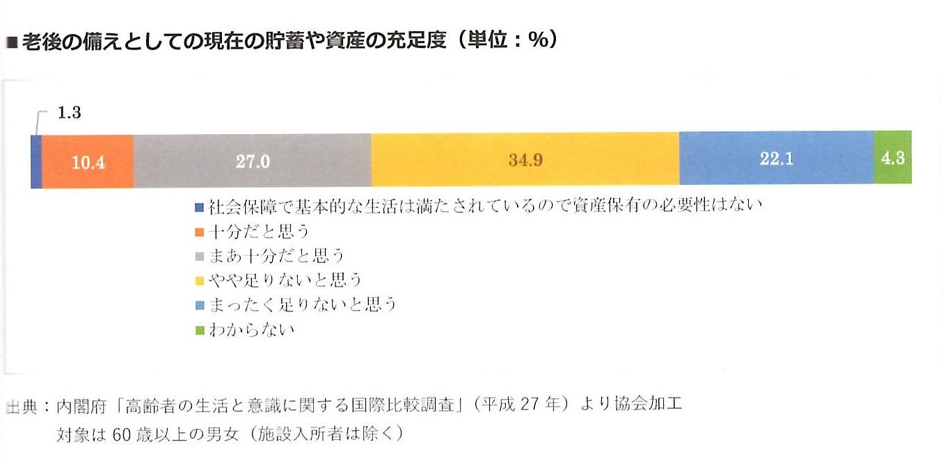 内閣府の調査によれば、日本の高齢者は半数以上が現在の貯蓄や資産について、「老後の備えとしてはやや足りない」「まったく足りない」と考えている一方、具体的に老後のためにしていることを訊ねると、「特に何もしていない」との回答が42.7%と突出しており、家族信託を含めた終活は、日本ではまだ定着していない新しい文化であるため、改めて家族・友人とゆっくりと相談することには抵抗を感じるのかもしれません。